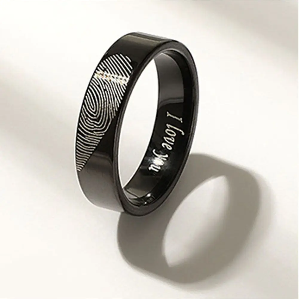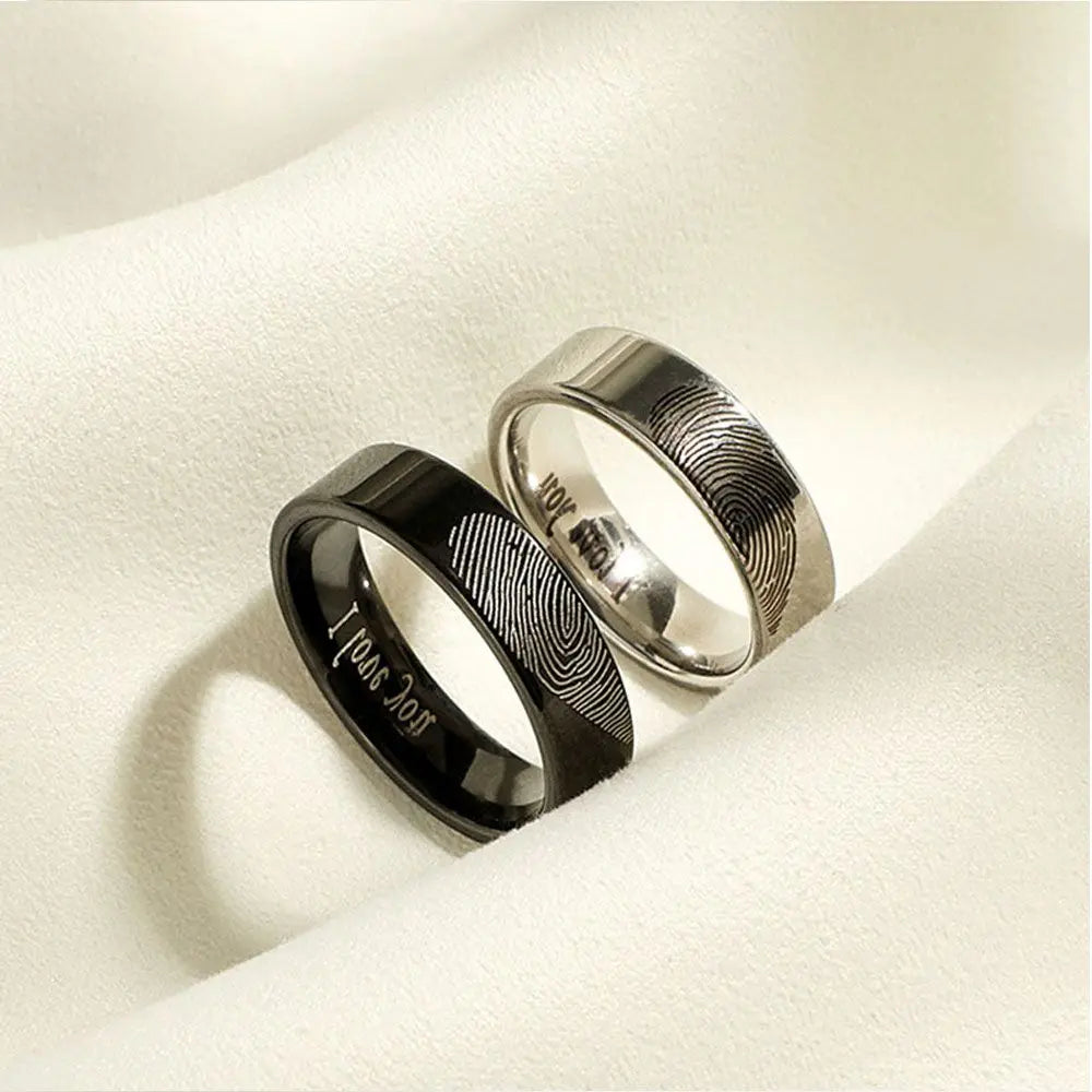 1 Pair Valentine's Day Couple Rings Heart Fingerprint Stainless Steel Charm Rings Fashion Jewelry Accessories For Lovers