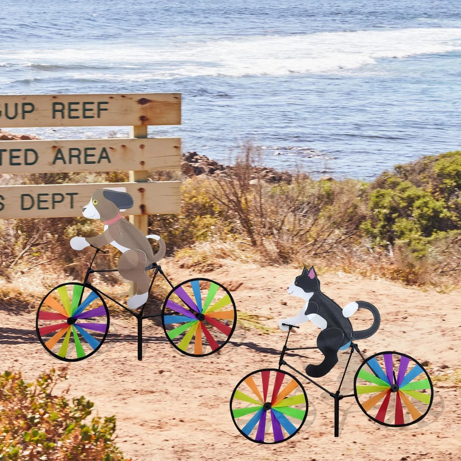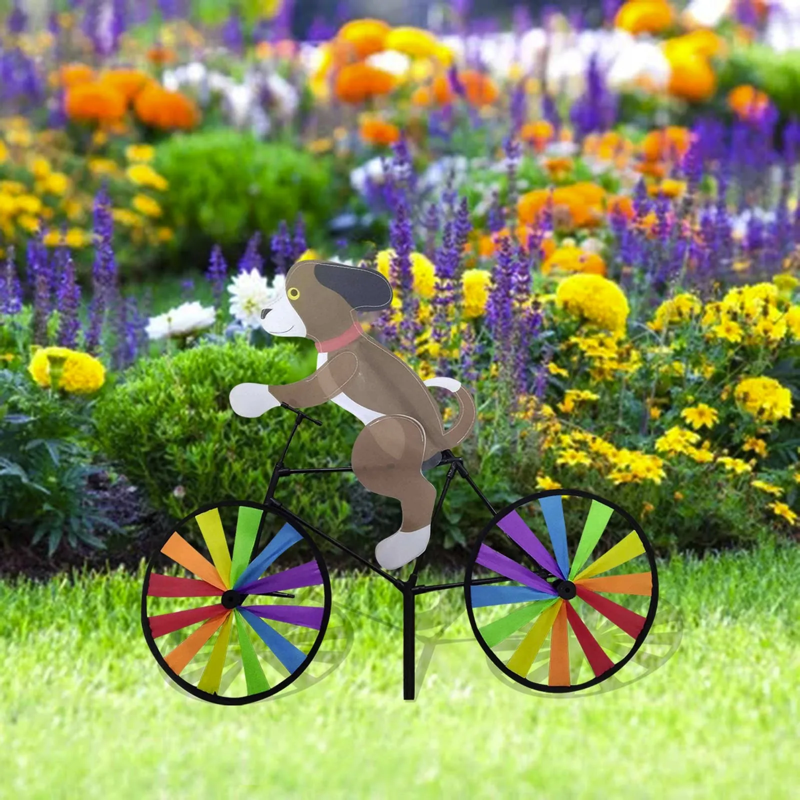 Animal Riding Three-Dimensional Cartoon Modelling Windmill Creative Bicycle Wind Spinners Standing Pole Garden Yard Decoration