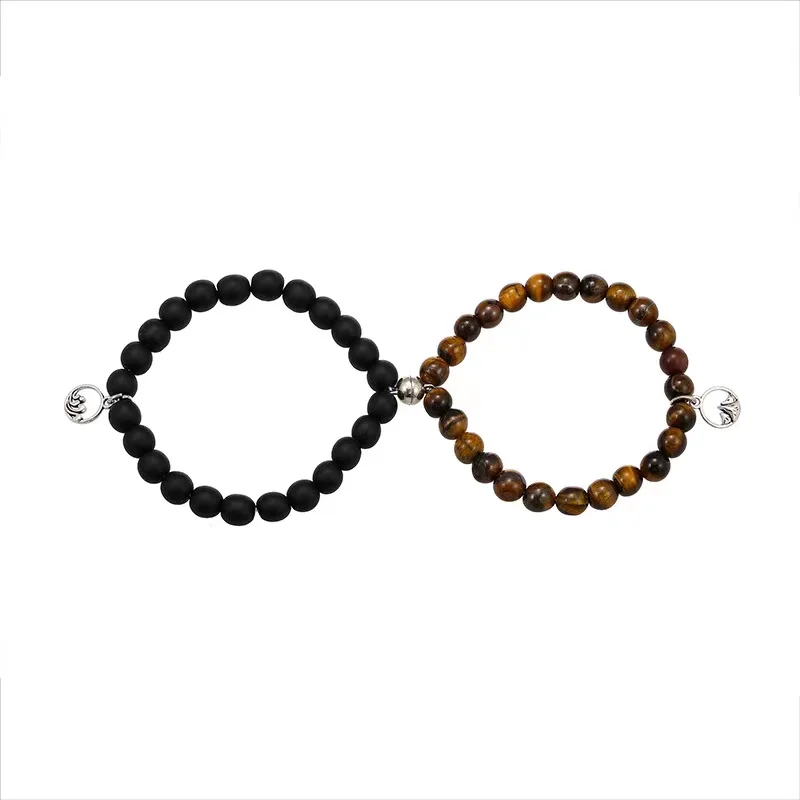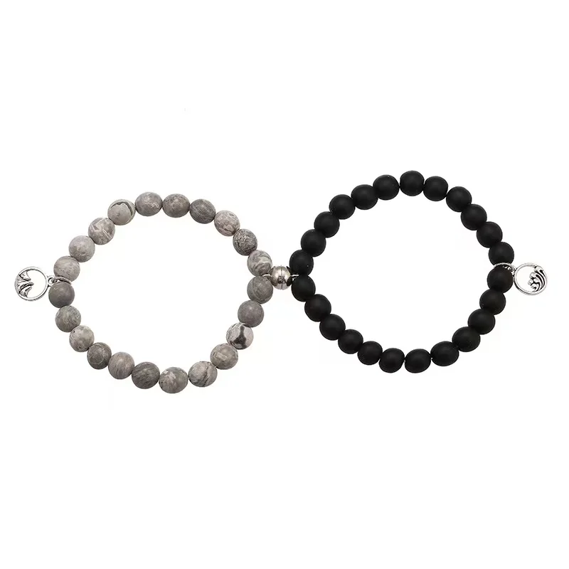 Beads Bracelet Mountain Sea Forever Love Relationship Natural Stone 8mm Magnet Clasp For Dear One Gift On Valentine's Day 2psc
