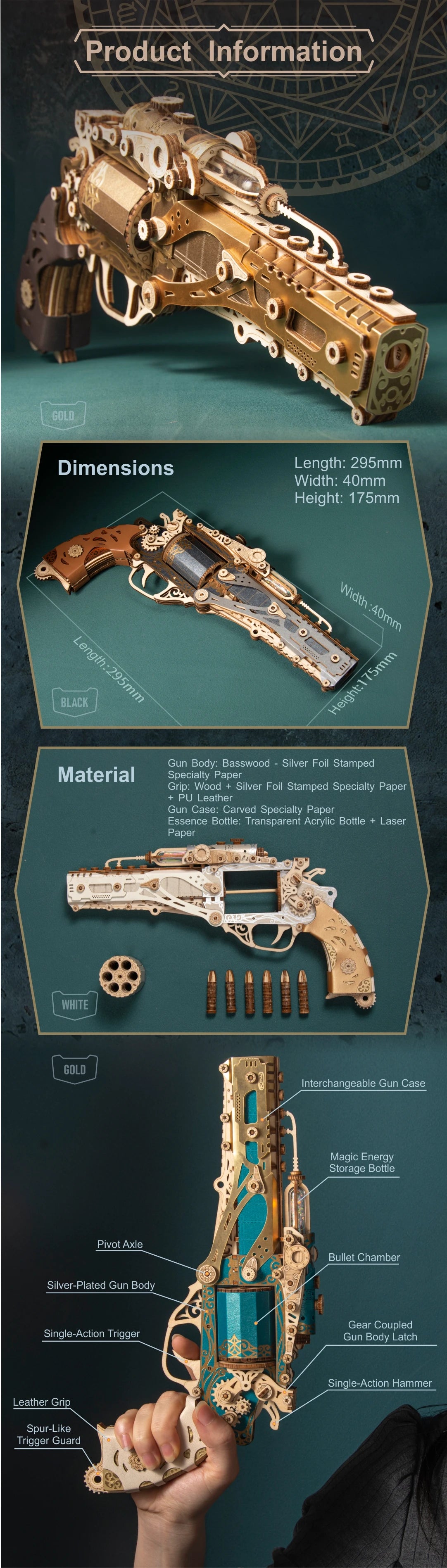 DIY 3D Wooden Puzzle Steam Revolver Assembly Model Kits Toys For Children Kids Girls Birthday Gift